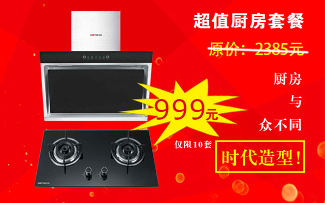 JX04煙機(jī)+Z002灶具僅需999元,限10套。
