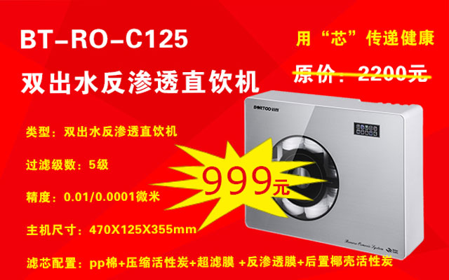 雙出水反滲透直飲機(jī)每臺(tái)僅需999元,僅限20臺(tái)。